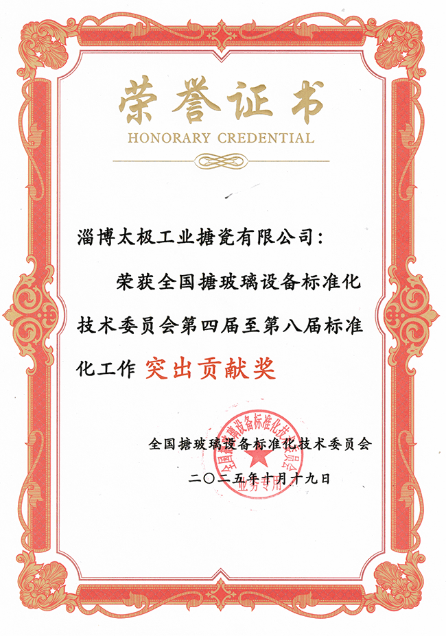 熱烈祝賀淄博太極工業(yè)搪瓷有限公司榮膺全國搪玻璃設(shè)備標(biāo)準(zhǔn)化技術(shù)委員會(huì)第四屆至第八屆標(biāo)準(zhǔn)化工作突出貢獻(xiàn)獎(jiǎng)!