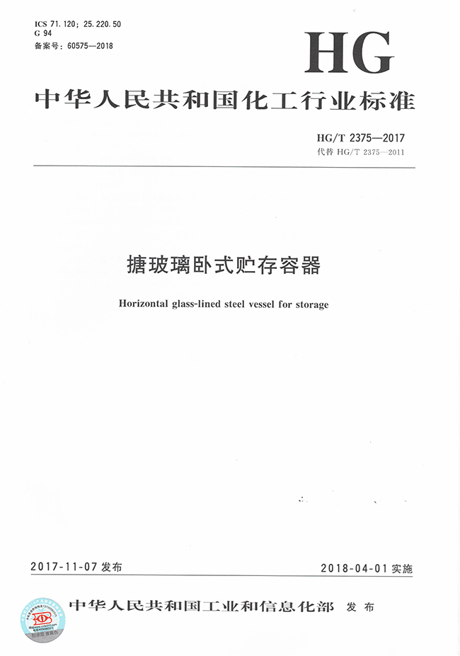 ?? 2011 年 制定行業(yè)標(biāo)準(zhǔn) HG/T 2375-2011《搪玻璃臥式貯存容器》;